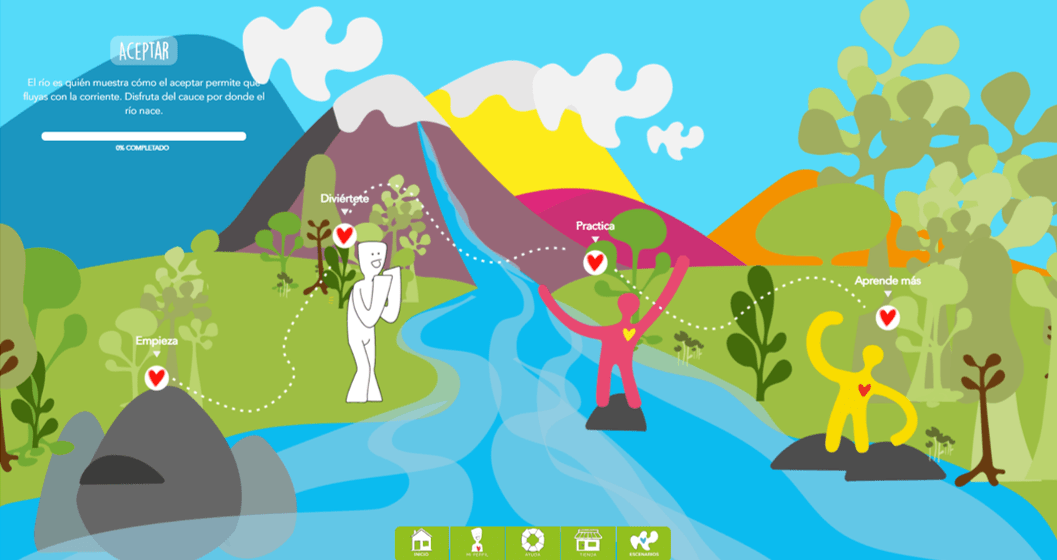 El rio es el escenario para aceptar. La famosa frase: “no te bañas dos veces en el mismo rio” aplica es evidente en este lugar, no puedes pretender controlar el rumbo del agua, esta gran capacidad permite un estado de flujo que te ahorra miedo, estrés, ansiedad y, sobre todo, rabias. Verás a través del juego y algunos expertos que el rio sabe cómo llegar al mar.