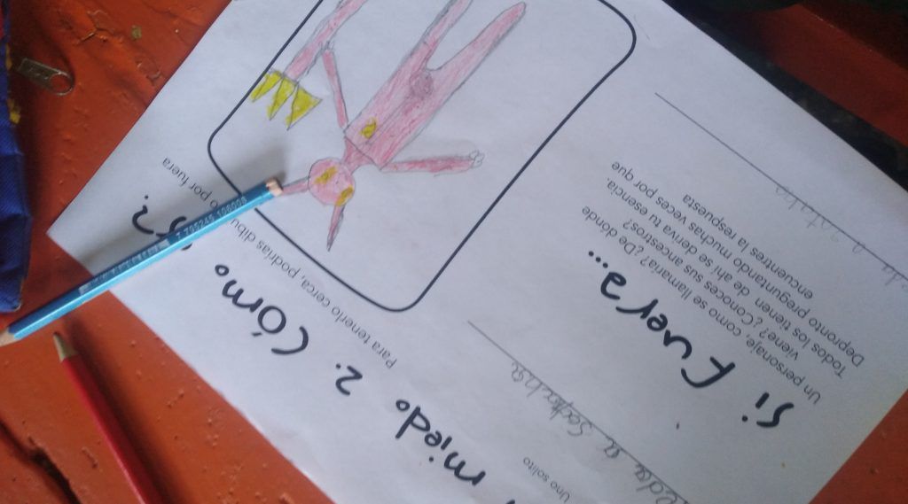 -Profe, y es que los monstruos tienen corazón? – -Mis monstruos sii. El tuyo tiene corazón? Dijo la profe Viviana ante la pregunta de la niña. – Siiiiiii… Dijo María Alejandra con 9 años y los ojos grandes y sorprendidos. -¿Si? Dijo Viviana con una sonrisa,-¿ y qué tiene tu monstruo en el corazón? -Mucha rabia, respondió Maria y se fue feliz a escribirlo en el libro que le dimos. Talleres presenciales dictados gracias a la Fundación El Condor.